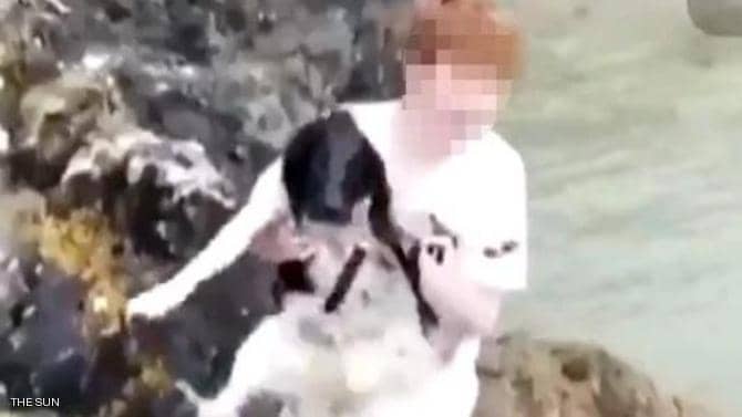 وأظهر الفيديو الذي تداوله رواد مواقع التواصل الاجتماعي، ونشرته صحيفة "صن" البريطانية، شابا يرمي كلبا بدت عليه ملامح الذعر في البحر، بينما يضحك من يصور المقطع في نهايته.