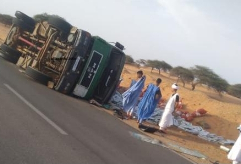 وكالة السواحل للانباء(نواكشوط): انقلبت شاحنة محملة بالمواد الغذائية على الطريق الرابط بين روصو وتكنت.