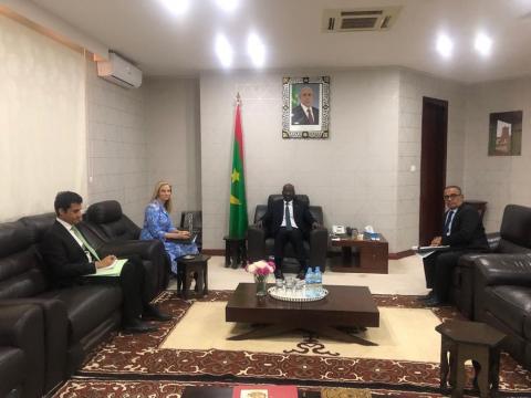 وكالة السواحل للأنباء(نواكشوط): استقبل وزير الخارجية الموريتاني الدكتور محمد سالم ولد مرزوگ يوم أمس الجمعة سفير جمهورية الصين الشعبية السيد اي بيجن كما استقبل سفيرة الولايات المتحدة الأمريكية السيدة سينثيا كريشت و استقبل أيضا سفير الاتحاد الأوربي في موريتانيا السيد جونس غويليم و وفق صفحة معالي الوزير فقد تضمنت هذه اللقاءات الانفرادية سبل التعاون المثمر بين موريتانيا و هذه البلدان