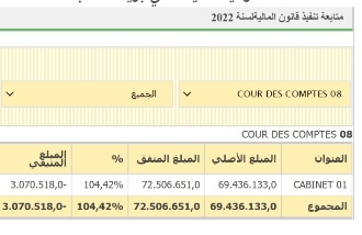 فيما أنفقت محكمة الحسابات 725.066.510 أوقية قديمة، في حين أن ميزانيتها الأصلية لا تتجاوز 694.361.330 أوقية قديمة، ما يعني أنها استهكلت 30.705.180 أوقية قديمة، أي بزيادة نسبة 4.42%.