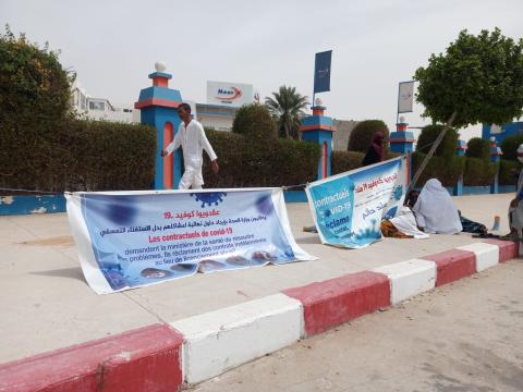 وكالة السواحل للانباء(نواكشوط): نظم عقدويو كوفيد 19 صباح امس وقفة احتجاجية أمام الوزارة الأولى بنواكشوط مطالبين "بعقد دائم" مع وزارة الصحة التى بدا انها اصبحت تبتعد وتتنكر اكثر لهؤلاء الذين عرضوا انفسهم وذويهم للمخاطر من اجل خدمة الوطن والقيام بالواجب تجاه هذا الشعب المستهلك فى جميع جوانب حياته..