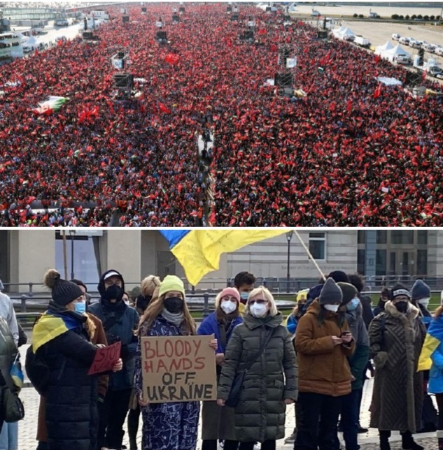 نواكشوط(وكالة السواحل للأنباء):نشر نائب رئيس مجلس الأمن الروسي دميتري مدفيديف صورة قارن فيها بين المظاهرات الداعمة لفلسطين وغزة وتلك التي خرجت دعما لأوكرانيا، وكتب: "شاهدوا الفرق".