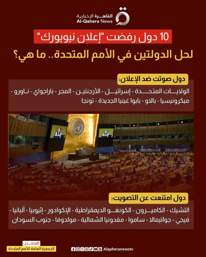 وكانت الأمم المتحدة قد أعلنت، في إعلان نيويورك، عن توافق دولي على خطوات ملزمة وزمنية لإنهاء الحرب في غزة وتنفيذ “حل الدولتين”، بما يشمل إقامة دولة فلسطينية كاملة السيادة،وإعادة إعمار غزة، ونشر بعثة استقرار دولية بإشراف أممي.