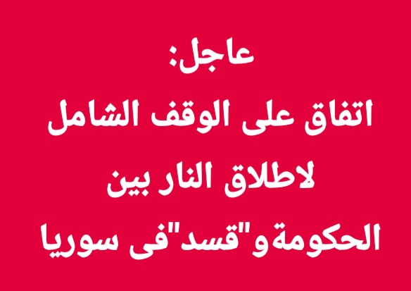 اعلنت "قسد" انه تم الاتفاق على إيقاف إطلاق النار بين الحكومة السورية وقواتها بموجب اتفاق شامل.