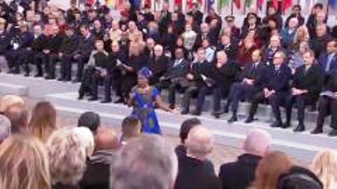 وقد استقبل فخامة رئيس الجمهورية والسيدة الأولى عند مدخل قصر الإليزيه من طرف الرئيس الفرنسي إيمانويل ماكرون والسيدة الأولى بريجيت ماكرون، قبل أن يتوجه القادة والرؤساء إلى مكان التظاهرة في ساحة قوس النصر وسط باريس.