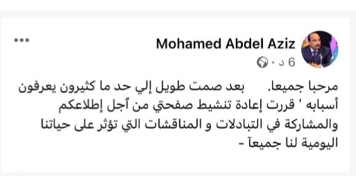 وقال ولد عبد العزيز في تدوينة على حسابه فيسبوك إن تنشيط الصفحة يأتي "بعد صمت طويل إلى حد ما".