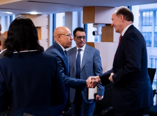 وكالة السواحل للأنباء(نواكشوط):أكد رئيس مجموعة البنك الدولي ديفيد مالباس دعم مؤسسته لتحول قطاع الطاقة، وتحسين الوصول إلى الكهرباء، وتوسيع نطاق مبادرات الطاقة الشمسية في موريتانيا.