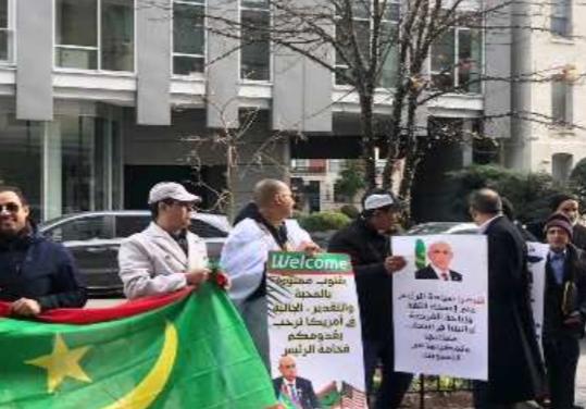 وكالة السواحل للأنباء(نواكشوط):نظم بعض من منتسبي الجالية الموريتانية في واشنطن وقفة مؤيدة للرئيس محمد ولد الغزواني ومرحبة به وذلك أمام مقر إقامته في العاصمة الأمريكية واشنطن