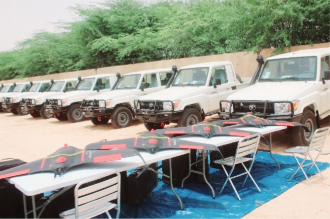 وتسلم الطائرات والسيارات والمعدات وزير الزراعة سيدنا ولد أحمد اعلي.