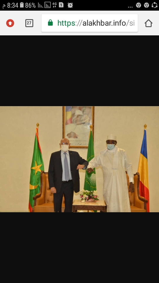 ورحب الرئيس اتشادي بنظيره الموريتاني، مضيفا في تغريدة نشرها على حسابه على "تويتر" أنه يشكر "الرئيس الدوري لمجموعة الخمس في الساحل على هذا التشريف".