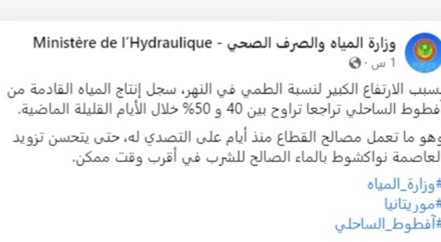 نيامى(وكالة السواحل للأنباء):أرجعت وزارة المياه والصرف الصحي الموريتاني أزمة العطش التي تشهدها العاصمة هذه الأيام إلى تراجع في إنتاج المياه القادمة من آفطوط الساحلي.