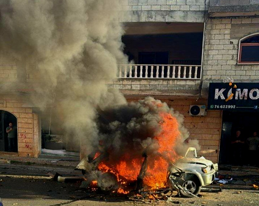 وأظهرت لقطات من موقع الاستهداف، احتراق السيارة وآثار الدمار إثر الغارة الصهيونية.