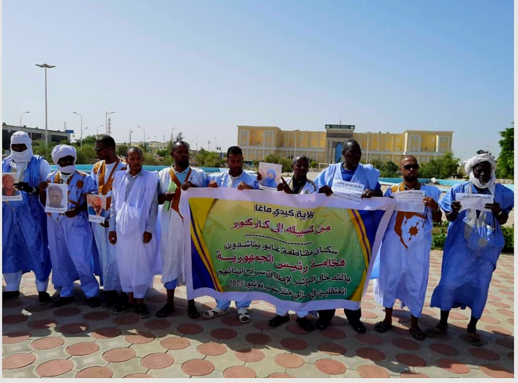 نظم أهالي معتقلين موريتانيين في دولة مالي، صباح اليوم الاثنين، وقفة احتجاجية بساحة الحرية في نواكشوط، طالبوا فيها الرئيس محمد ولد الشيخ الغزواني، بالتدخل العاجل لإطلاق سراح ذويهم.