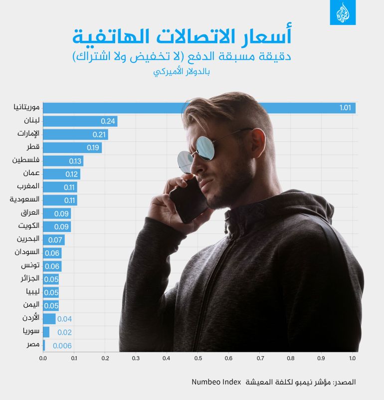 وكالة السواحل للانباء(نواكشوط): تصدرت موريتانيا قائمة أغلى الدول العربية من ناحية تكلفة الاتصالات الهاتفية والإنترنت، في المقابل احتلت مصر صدارة قائمة أرخص دول المنطقة في أسعار المكالمات والإنترنت.