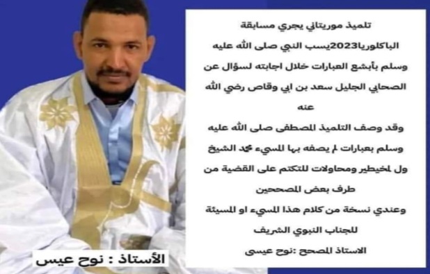 وكالة السواحل للأنباء(نواكشوط):نقل موقع اخباري عن الاستاذ نوح عيسى الذي كشف وبكل شجاعة وانحياز لجناب النبي صلى الله عليه وسلم أن الجهات" الرسمية" كما سماها موقع ميادين "الذي نقل عن الاستاذ" استدعته واستجوبته ووجهت إليه أصابع الاتهام.