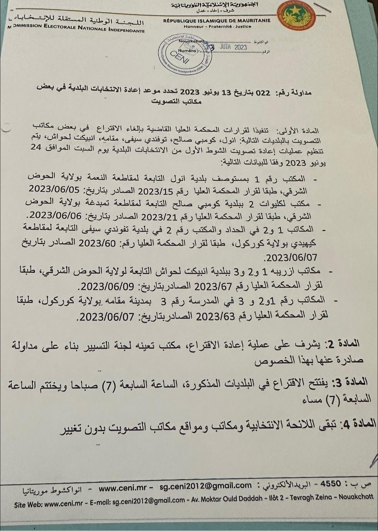 وكالة السواحل للأنباء(نواكشوط): قال الأستاذ الجامعي والمحامي يعقوب ولد السيف إنه وإلى حين الاستظهار بالأساس القانوني للمخالفة الصريحة للأجل الدستوري لانعقاد اجتماع الجمعية الوطنية خمسة عشر (15) يوما بعد انتخابها، يكون المرسوم الصادر عن رئيس الجمهورية بدعوة الجمعية الوطنية للاجتماع في دورة استثنائية يوم الإثنين الموافق 19 يونيو 2023 على تمام الساعة ال
