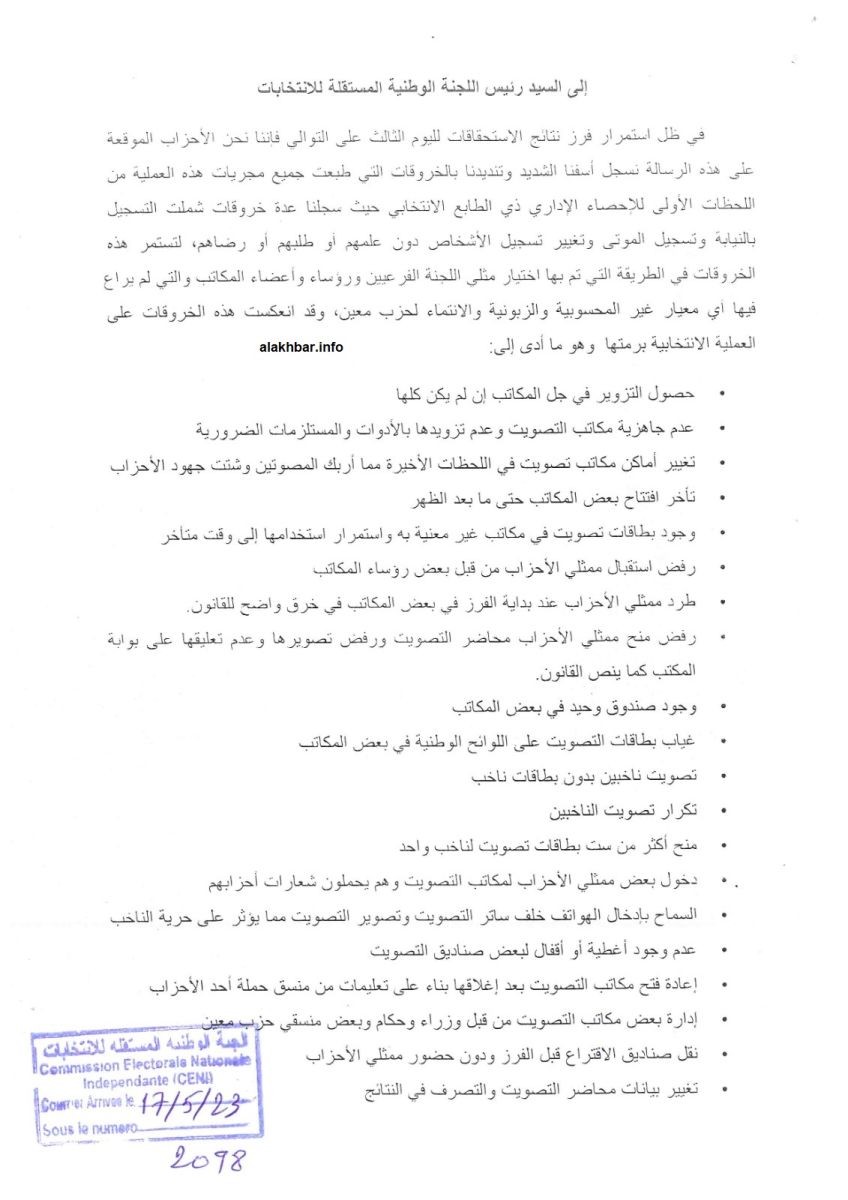 وكالة السواحل للأنباء(نواكشوط): فاز مرشح الكرامة للبلدية القاسم بلالي بمنصب عمدة بلدية نواذيبو للمرة الثانية على التوالي بفارق 1713 صوتا على مرشح حزب الإنصاف أحمد خطري.