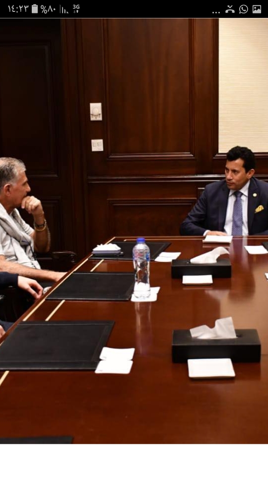 عقد أشرف صبحى وزير الشباب والرياضة، اليوم السبت، اجتماعاً مع كارلوس كيروش المدير الفني للمنتخب الوطني الأول لكرة القدم وأعضاء الجهاز الفني المعاون له، وذلك عبر تقنية الفيديو كونفرانس.