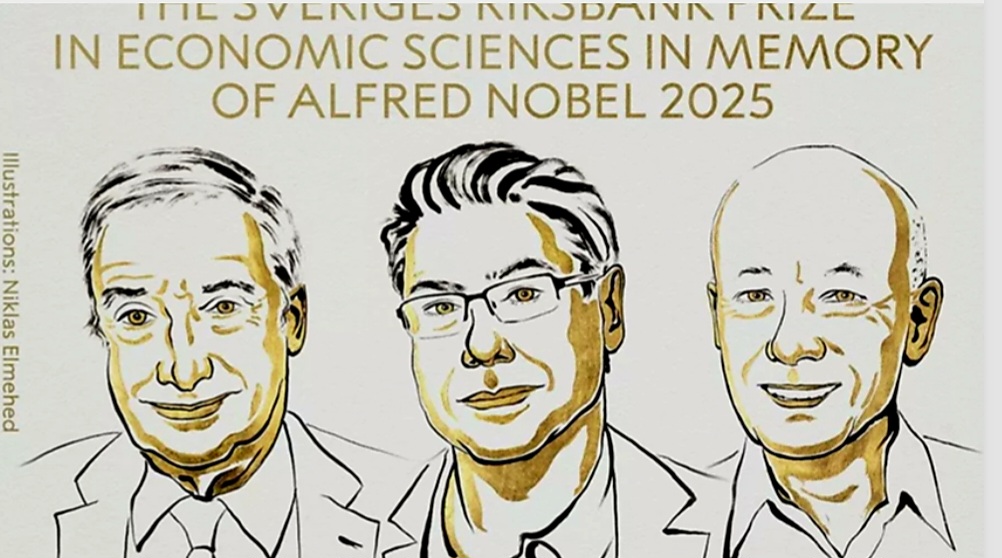 أعلنت الأكاديمية الملكية السويدية للعلوم في ستوكهولم اليوم منح جائزة نوبل في العلوم الاقتصادية لكل من البروفيسور جويل موكير، والبروفيسور فيليب أغيون والبروفيسور بيتر هويت.